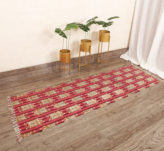 Cotton Area Rug Printed -Tiger Stripes Magenta