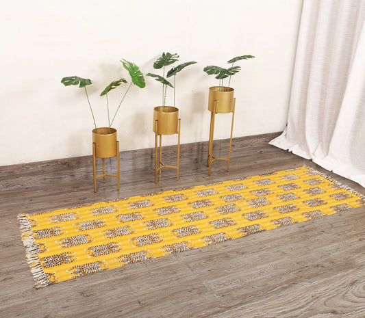 Cotton Area Rug Printed -Tiger Stripes Mustard