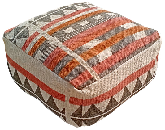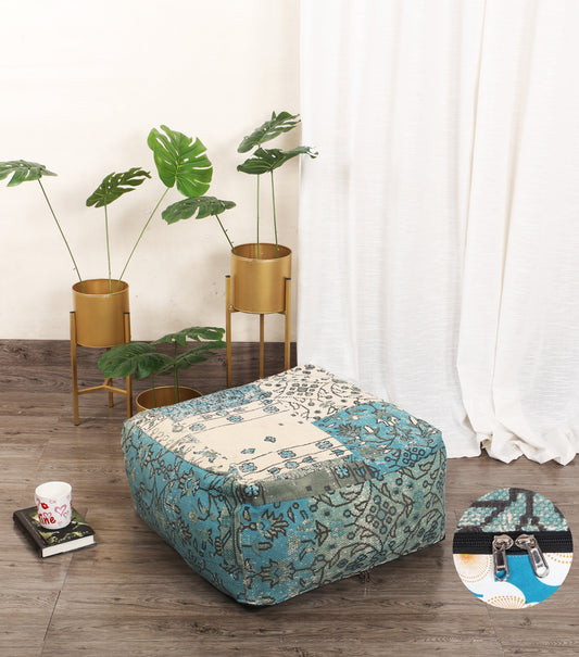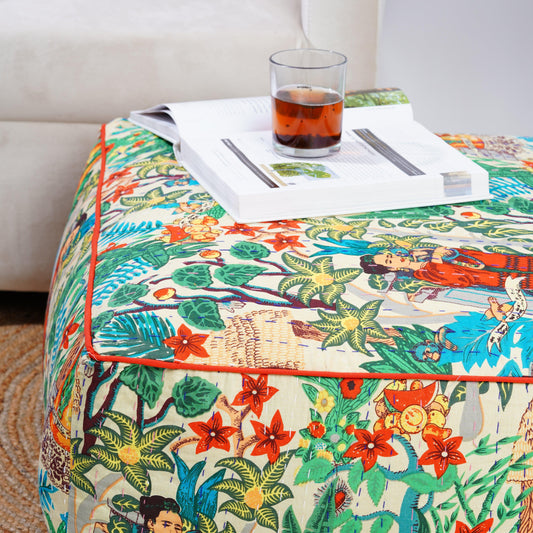Frida Kahlo Kantha Square Ottoman / bean bag -Beige