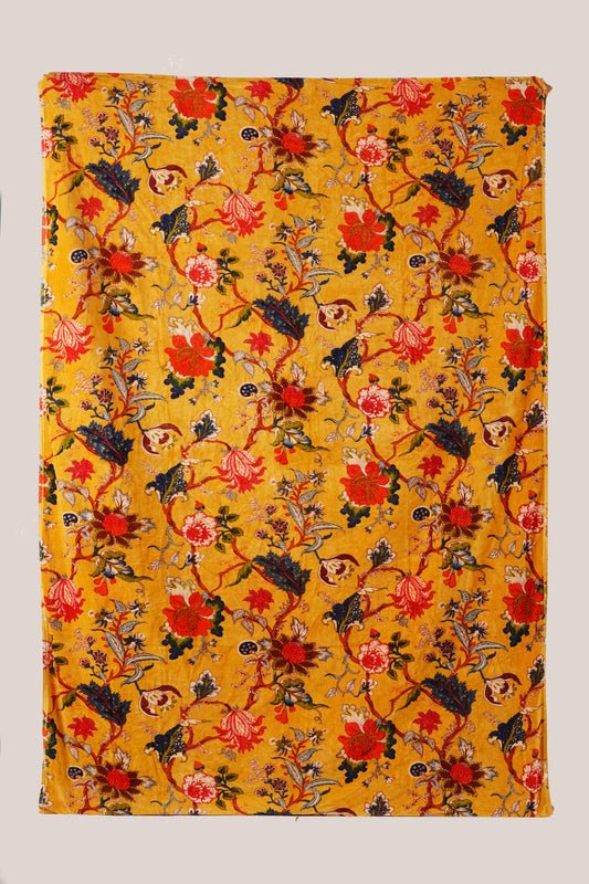 Hand Quilted Kantha Bedcover- Yellow Bells
