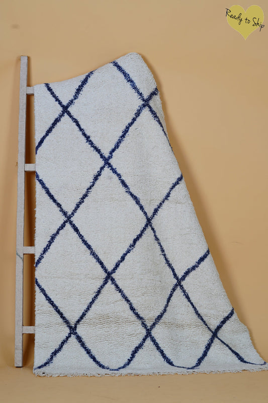 Plush & Furry 3 x 5 feet Classic Shaggy Rug/Carpet- White and Blue