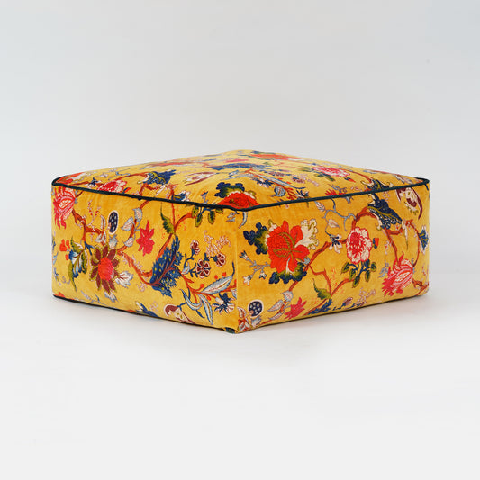 Tree of Life Velvet Square Ottoman / bean bag -Mustard yellow