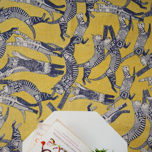 Cat Party Yellow Cotton cambric 44 inches width Fabric per meter