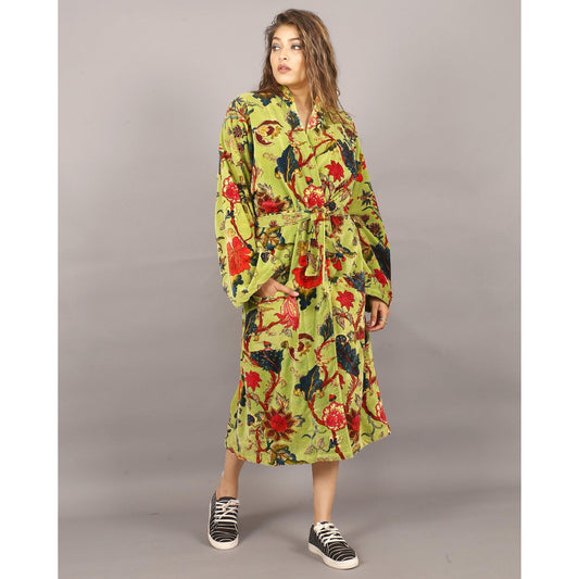Velvet Kimono/ Jacket-Birds of Paradise-Light Green
