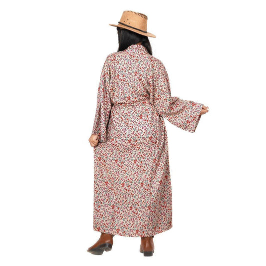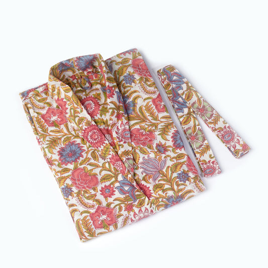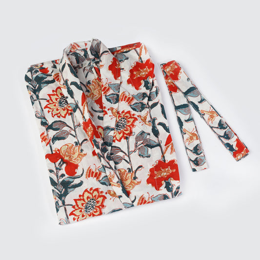 Cotton Velvet Kimono /Robe/Lounge Wear- Birds of Paradise Magenta. the red floral robe