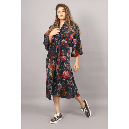 Velvet tree of life Kimono/ Jacket-Navy blue