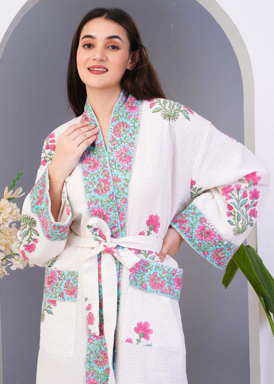 Waffle knit printed kimonos/ Robe/ Lounge Wear Pink and Blue floral