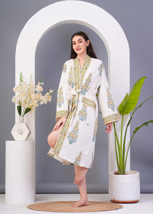 Waffle knit printed kimonos/ Robe/ Lounge Wear teal floral