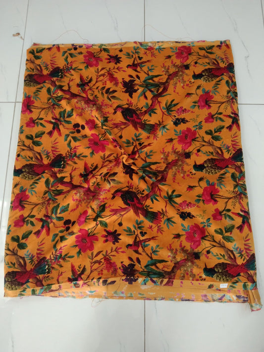 Velvet fabric for upholstery Paradise Print- Mustard