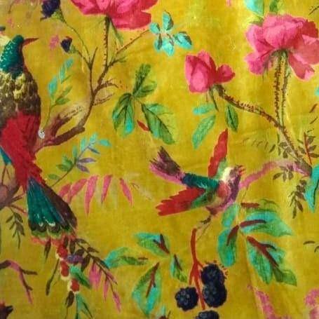 Birds Of Paradise Velvet fabric for upholstery- Mustard