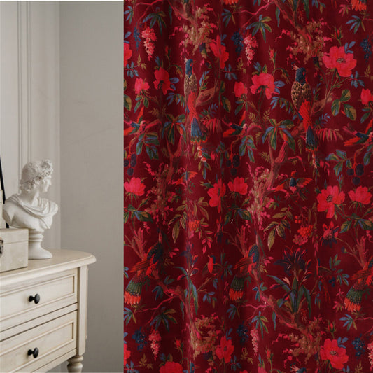Birds of Paradise 1 Velvet Curtain -Maroon