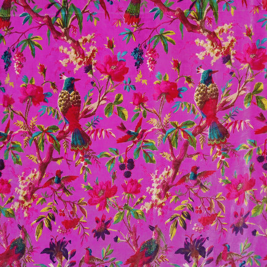 Birds of Paradise 1 Velvet Curtain- Bright Pink