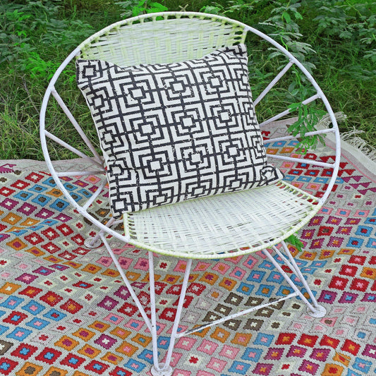 16" Bohemian Cushion Cover - Black and White boxes- Sale
