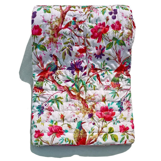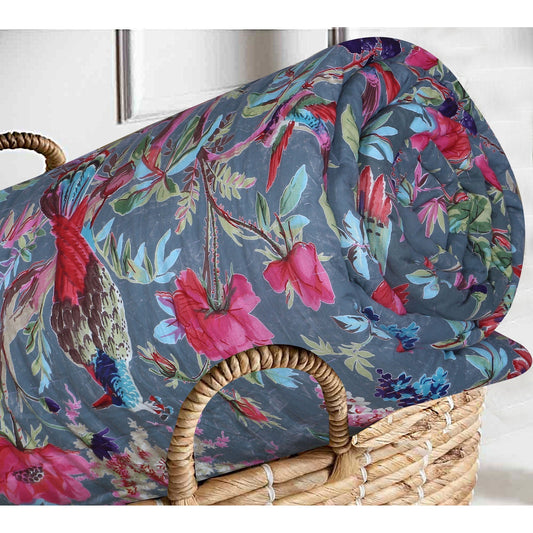 Our cotton quilts have the signature prints from Jaipur, are handmade and fluffy, making them a must have in all homes. They can serve as light weight razai for cool winter nights, in summers as ac covers and simple home decors if not in use.