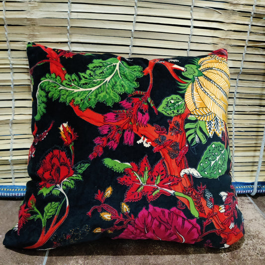 16" Brown Floral Velvet Cushion Cover/Throw Pillow- Sale