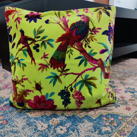 18" Parrot Green Paradise Velvet Cushion Cover-Sale