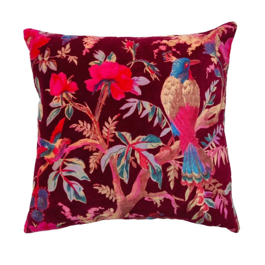 18" Luxe Maroon Paradise Velvet Cushion Cover-Sale
