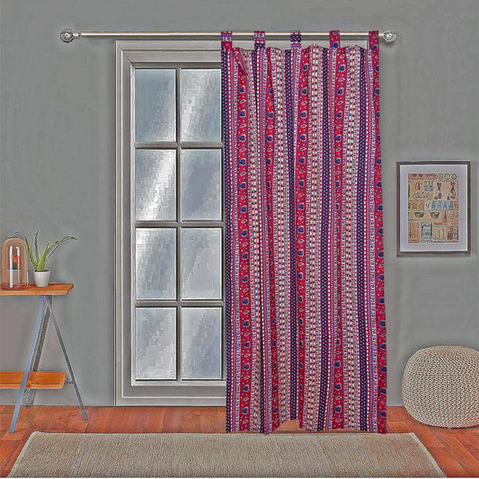 8 Feet Floral Blocks - Pink Red Curtain Pair-sale