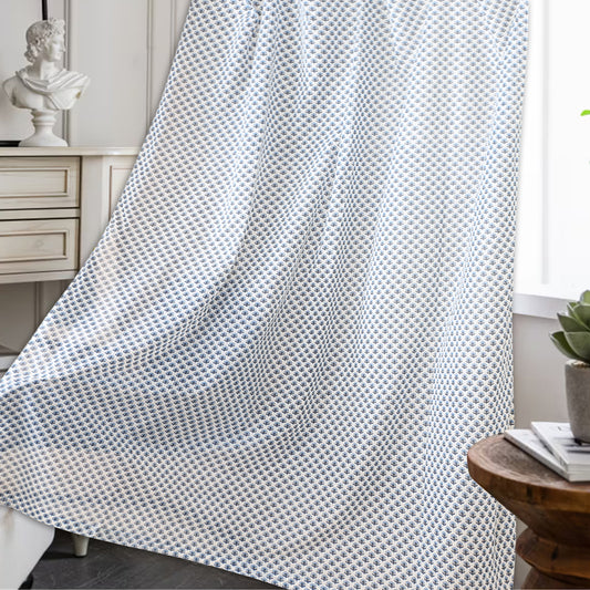 Motif Prints White and Blue Curtain Pair-Sale