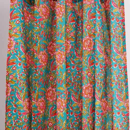 Teal and Pink Floral Cotton cambric 44 inches width Fabric per meter