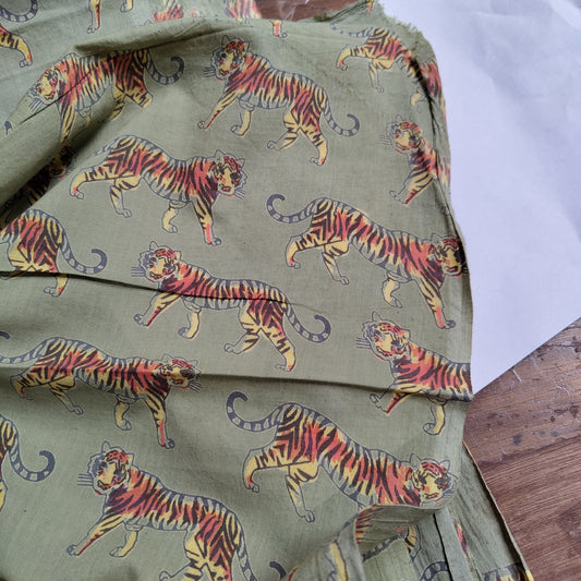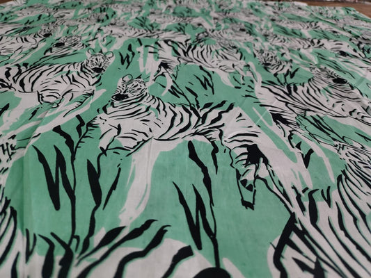 Tiger Print Olive Green Cotton cambric 44 inches width Fabric per meter