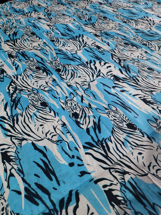 Disco Blue Tiger Cotton cambric 44 inches width Fabric per meter