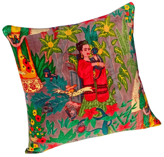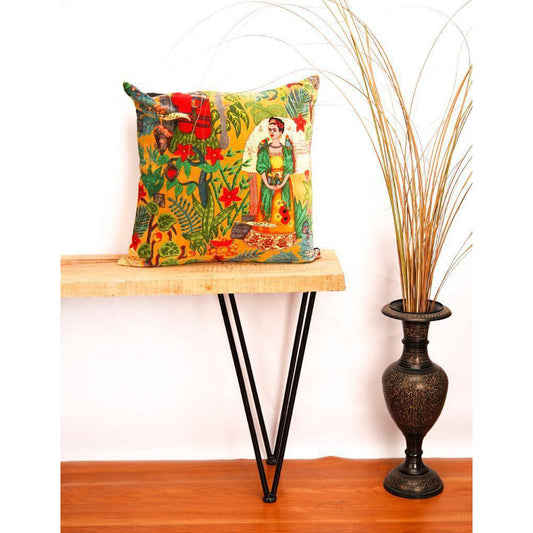 Frida Kahlo Velvet Cushion Cover-Mustard Yellow