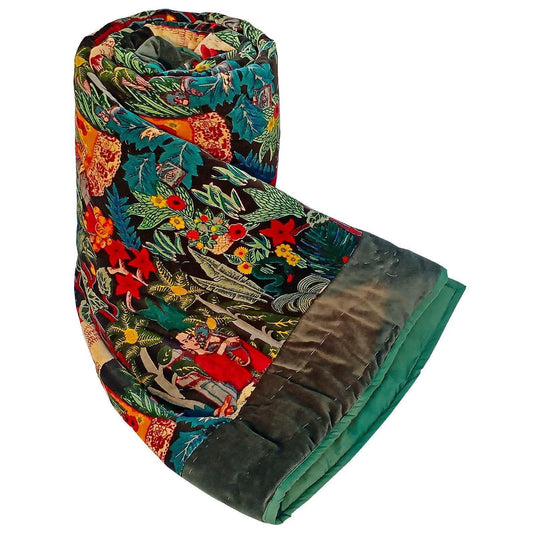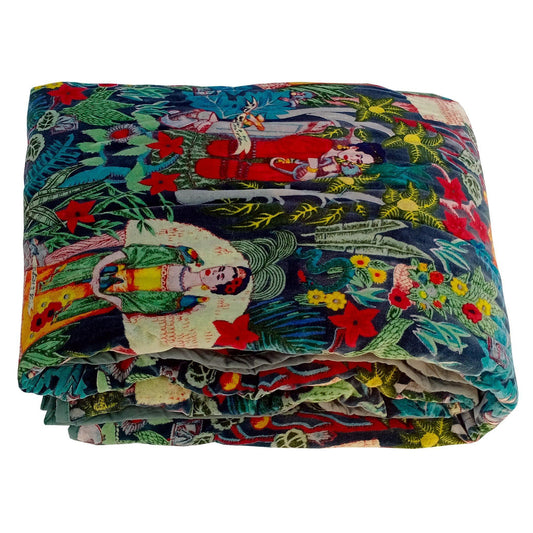 Frida Kahlo Cotton Velvet Quilt Green-Border