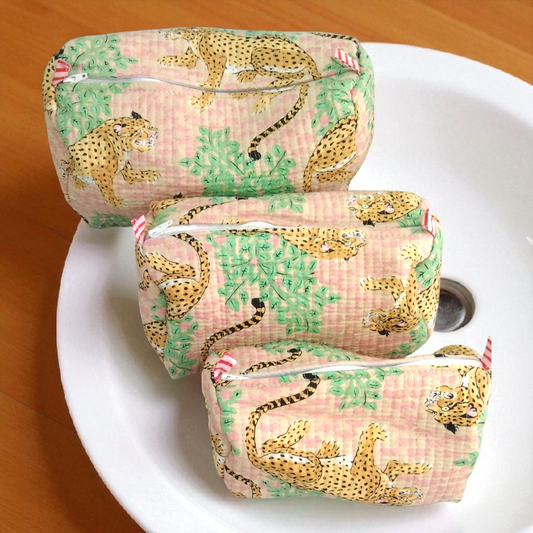 Vanity bag/ toiletry bag set of 3- leopard adventure