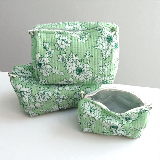 Vanity bag/ toiletry bag set of 3- Green Floral