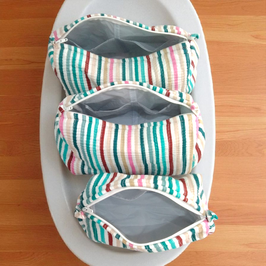 Vanity bag/ toiletry bag set of 3- Colorful stripes