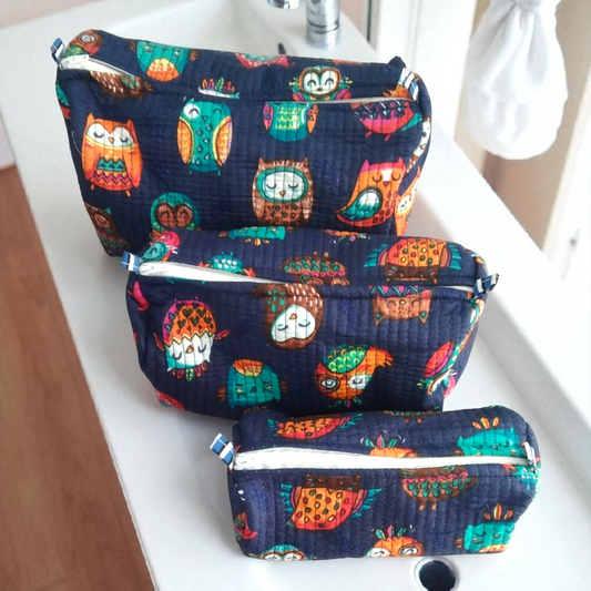 Vanity bag/ toiletry bag set of 3- Funky Owl