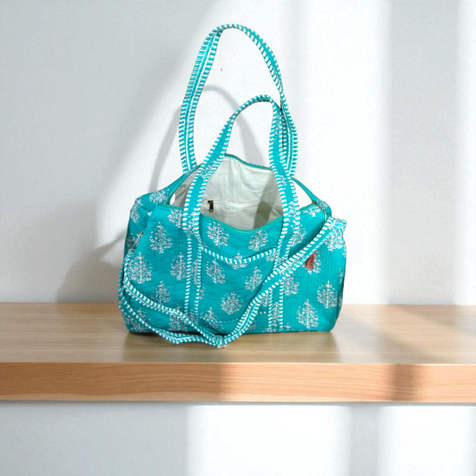 Quilted Duffle Bag- Turquoise