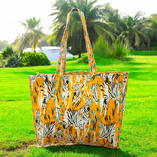 Handmade Quilted Tote Bag- Yellow Zebra