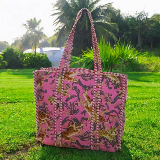 Handmade Quilted Tote Bag-Pink Tiger