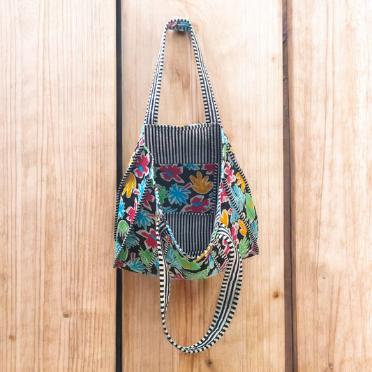 Handmade Quilted Tote Bag- Black Floral