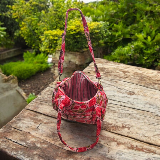 Handmade Quilted Tote Bag- Fiesty red