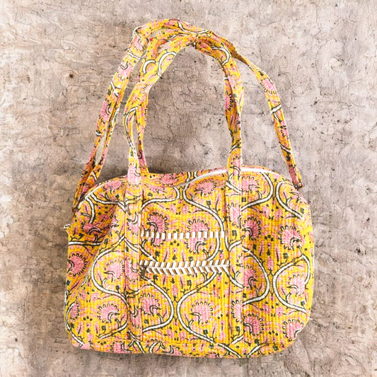 Quilted Duffle Bag- Yellow and Pink Floral