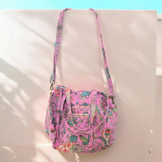 Quilted Duffle Bag- Pink Floral