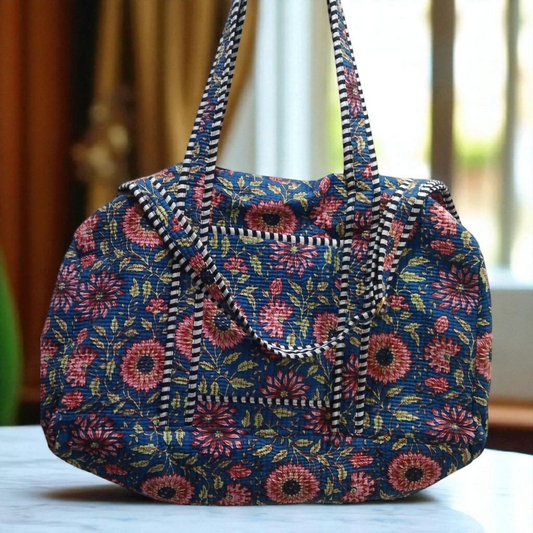 Quilted Duffle Bag- Blue Floral