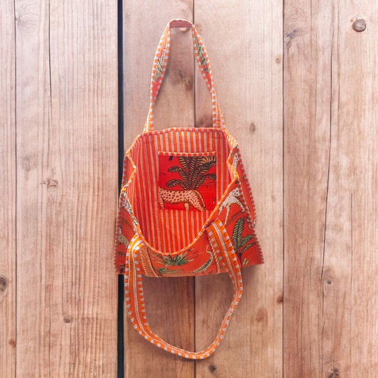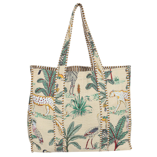 Handmade Quilted Tote Bag - Jungle Panther Off White