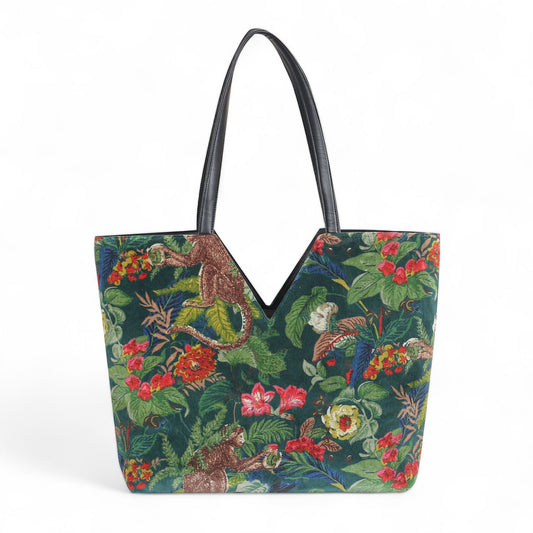 Jungle vibe V Cut Velvet Hand Bag- Navy
