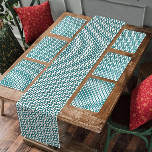 Cotton Canvas Runner & Mat Set- Green Matrix