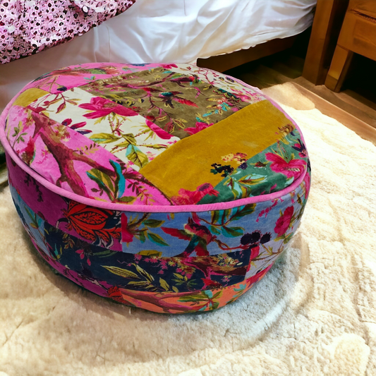 Patchwork Velvet Round Ottoman / bean bag -Bright Pink