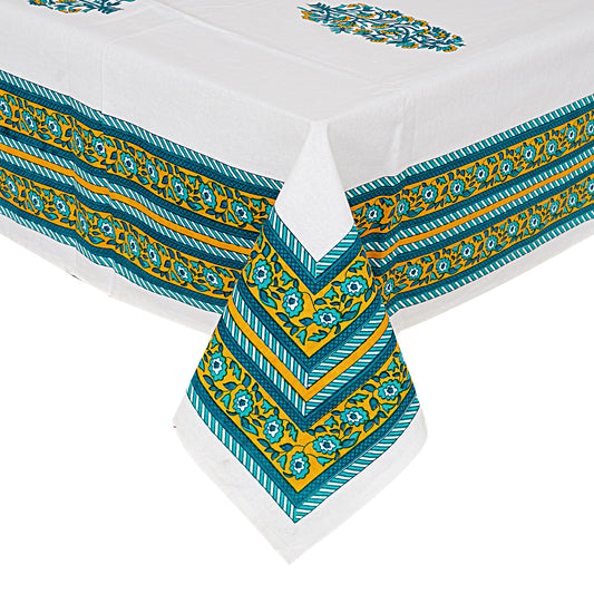 Green Blue Motif 82 x 60 inches Dining Table Cover | Grey and Yellow 82 x 60 inches Dining Table Cover | Ready to Ship