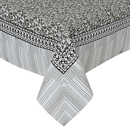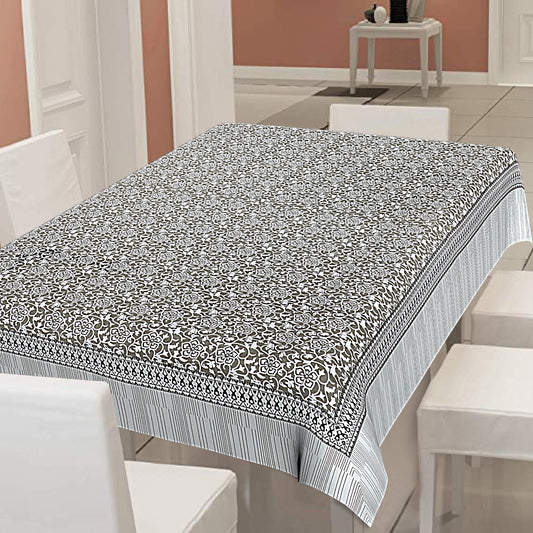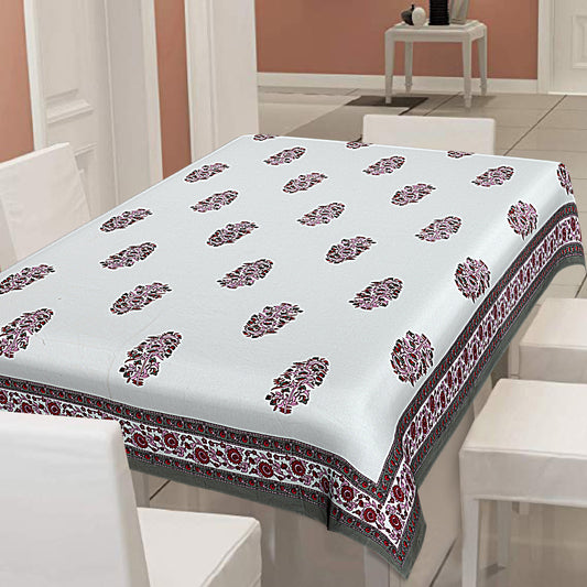 Pink Motif 82 x 60 inches Dining Table Cover Grey | Ready to Ship
