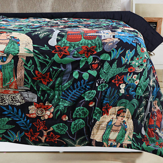 200 GSM Cotton Quilt Frida Kahlo Black with pillow covers