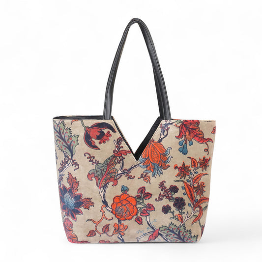 Tree of Life V Cut Velvet Hand Bag- Ivory