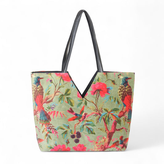 Paradise V Cut Velvet Hand Bag- Olive Green