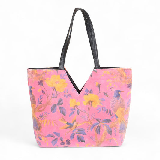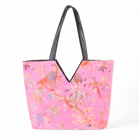 Paradise V Cut Velvet Hand Bag- Pink and Yellow